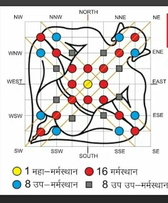 In this plan, We make the use of sensitive points of the house or outer space. Like our body have sensitive points, same points are also Present in our home and outer space. In this plan, we do the remedy of blocked energy of these sensitive points. If any of these sensitive points gets blocked due to weigh down or any other reason, the energy radiating through that points gets blocked, which increases the chances of physical, mental, and emotional issues in persons' life. Details of these lines are as follows: